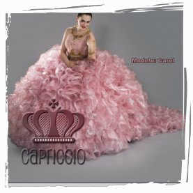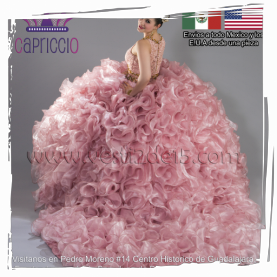 Descripción: Vestido para quinceañera en color rosa Blush con tul y brillos de circonia