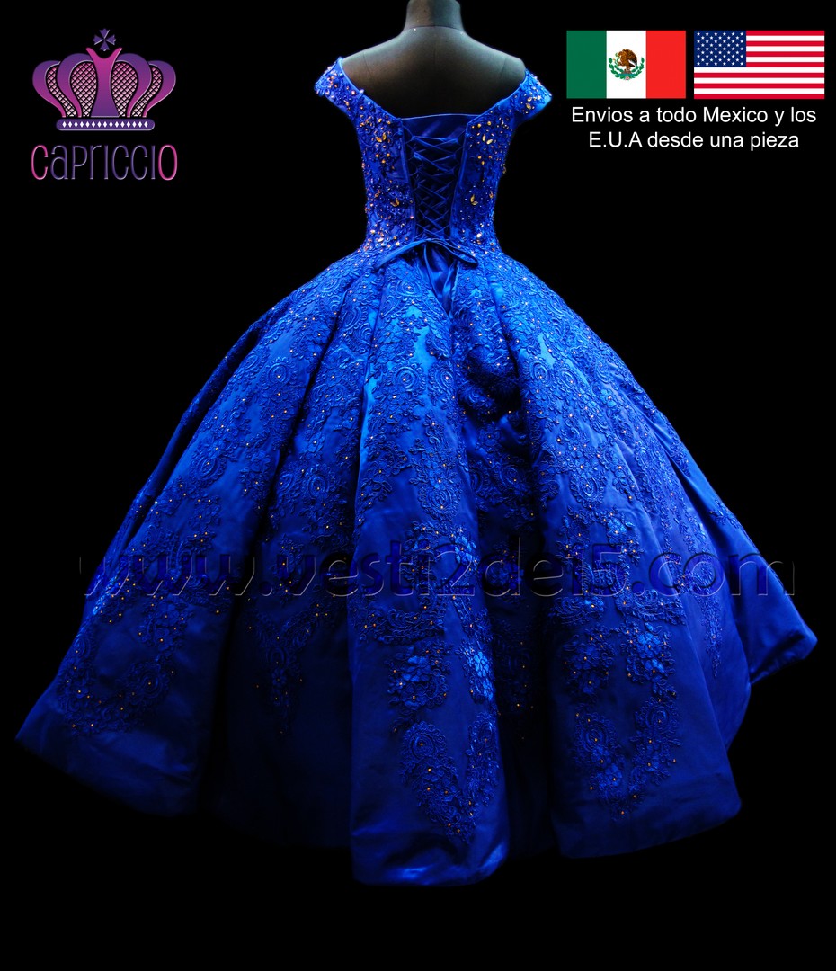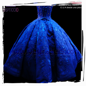 Descripción: vestido para quinceañera color azul rey con encajes bordados directo a la tela