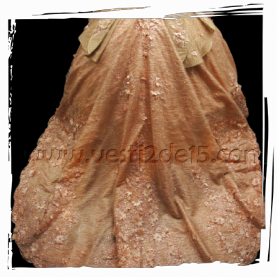 Descripción: Vestido para quinceañera en color Blush con encajes en la falda y talle