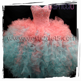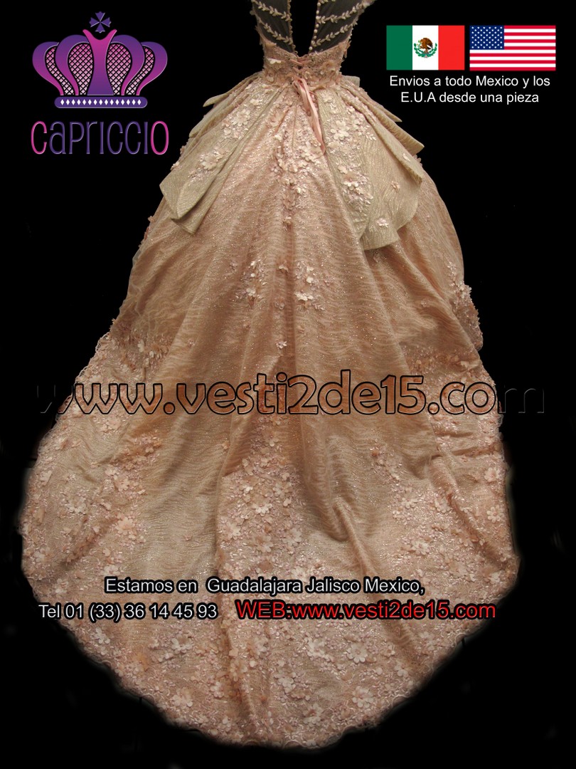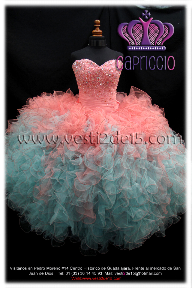 Descripción: es un vestido especial para las quinceañera que les gustan los colores cálidos y frescos es de tul con encajes