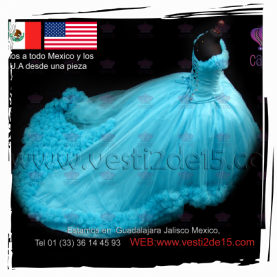 Descripción: Es un vestido para quinceañera tipo princesa en color azul con rosa pastel este tipo de vestido es para la chicas mas extravagantes que les gusta el Glamour!!